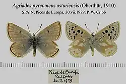 Agriades pyrenaicus, a la que se conoce como gavarnie azul, es una mariposa paleártica de la familia Lycaenidae.[1] Se encuentra en las montañas de Asturias, norte-España occidental, los Pirineos, la península balcánica del sur, Turquía, el Cáucaso y Armenia.[2] Su hábitat es de prados alpinos o pedregosos, se encuentra en las altitudes que varían de 1500 a 2200 metros.[3]