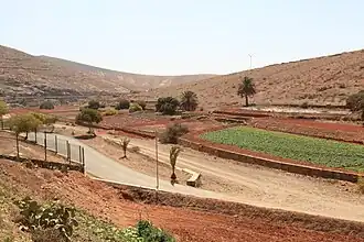 AGUA DE BUEYES: pago de la isla de Fuerteventura, prov. de Canarias, part. jud. de Teguíse: jurisd. y felig. de La Antigua: sit. en unas lomas poco inclinadas que se hallan al pie de las montañas, que desde la v. se corren al SO.; tiene una buena ermita; es terreno muy propio para arboleda de que en otro tiempo estuvo cubierto; y si se plantaran los valles que descienden de las montañas, volveria á tenerlos tan buenos como antes, con las ventajas que llevan consigo, especialmente en un pais en que los rocios de la mañana son los que suplen la escasez de las aguas para el riego; con las que estraen por medio de minas del barranco, y á brazo de algunos pozos, riegan diferentes pequeños trozos de tierra. En cuanto á prod., pobl., riqueza y contr. (V. La Antigua).(Madoz, 1845, p. 121)