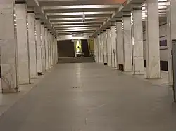 Ideada por Yuliya Kolesnikova, Petukhova y Fokina, se construyó siguiendo el modelo relativamente nuevo de los pilares con tres pasillos, que se convirtió en el diseño más utilizado en los años 1960 por su bajo coste de construcción. La estación tiene pilares de mármol blanco acentuados con una línea de mármol negro muy cerca de la parte superior. Las paredes, que originalmente estaban recubiertas de azulejos blancos con cuatro líneas horizontales de azulejos azules, fueron cubiertas de nuevo en 2003 con placas de aluminio de colores similares para una apariencia más moderna y limpia.[1]