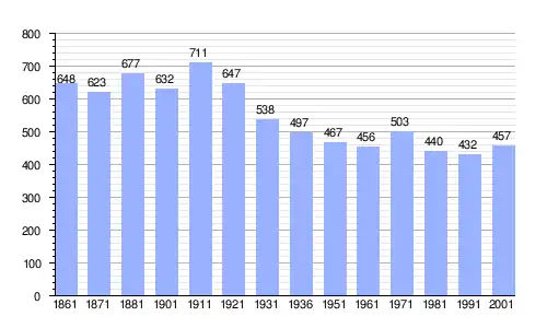 | Gráfica de evolución demográfica de Alagna Valsesia entre 1861 y 2001 |