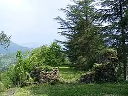 En una montaña se encuentran las ruinas del castillo de Mamuka, llamado así en honor a Mamuka Tavdguiridze. El castillo fue destruido durante el terremoto de 1959; solo ha sobrevivido el muro sureste, cuya altura alcanza los tres metros.