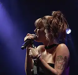 ![]() Alba Reche durante su concierto de fin de gira de HT en Madrid en 2023 | ||