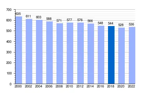 | Gráfica de evolución demográfica de Alcaudique entre 2000 y 2022 |