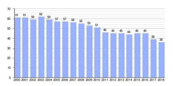 | Gráfica de evolución demográfica de Alde entre 2000 y 2018 |