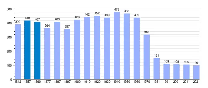 | Gráfica de evolución demográfica de Aldeanueva de Guadalajara[4] entre 1842 y 2021 |