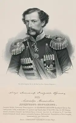 El kniaz Aleksándr Mijáilovich Dondukov-Korsákov (en ruso: Алекса́ндр Миха́йлович Дондуко́в-Корса́ков; San Petersburgo, 12 de septiembre de 1820 - uyezd de Pórjov, guberniya de Pskov, 15 de abril de 1893), general y estadista ruso, participante en la guerra del Cáucaso y en la de Crimea.