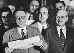 - ↑ a b Las fuerzas armadas restituyen el imperio de la soberanía popular: las elecciones generales de 1946. Tomo II. Buenos Aires: Imprenta de la Cámara de Diputados. 1946. Consultado el 13 de enero de 2024.