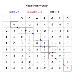 El algoritmo de Needleman-Wunsch sirve para realizar alineamientos globales de dos secuencias. Se suele utilizar en el ámbito de la bioinformática para alinear secuencias de proteínas o de ácidos nucleicos. Fue propuesto por primera vez en 1970, por Saul Needleman y Christian Wunsch. Se trata de un ejemplo típico de programación dinámica. El algoritmo funciona del mismo modo independientemente de la complejidad o longitud de las secuencias y garantiza la obtención del mejor alineamiento.[1]