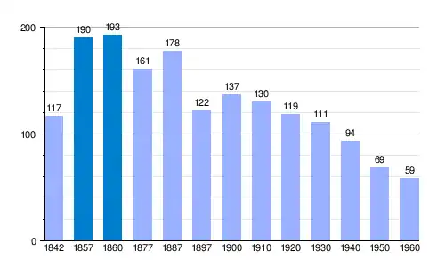 | Gráfica de evolución demográfica de Alins del Monte[1] entre 1842 y 1960 |
