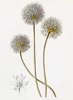 - ↑ «Allium caeruleum». World Checklist of Selected Plant Families. Consultado el 8 de julio de 2013.