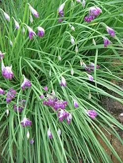 Allium: nombre genérico muy antiguo. Las plantas de este género eran conocidos tanto por los romanos como por los griegos. Sin embargo, parece que el término tiene un origen celta y significa "quemar", en referencia al fuerte olor acre de la planta.[4] Uno de los primeros en utilizar este nombre para fines botánicos fue el naturalista francés Joseph Pitton de Tournefort (1656-1708).