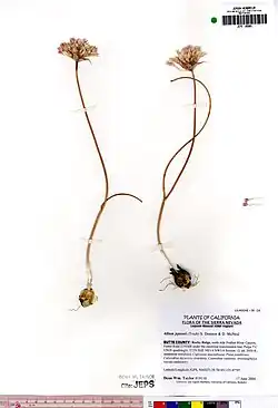 - ↑ «Allium jepsonii». World Checklist of Selected Plant Families. Consultado el 9 de julio de 2013.