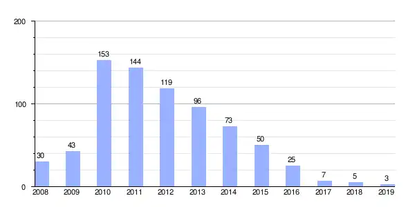 | Gráfica de evolución de Deuda viva del Ayuntamiento de Almócita entre 2008 y 2019 |