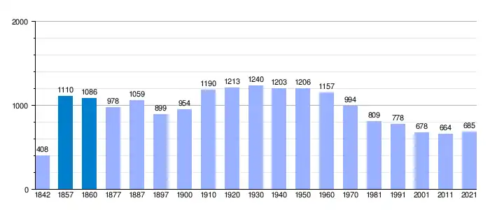 | Gráfica de evolución demográfica de Almunia de San Juan[3] entre 1842 y 2021 |
