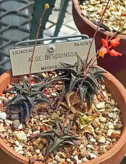 - ↑ «Aloe descoingsii». Tropicos.org. Missouri Botanical Garden. Consultado el 25 de marzo de 2013.