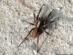 - ↑ a b c «Alopecosa pulverulenta». Catálogo mundial de arañas (en inglés). Consultado el 18 de marzo de 2022.