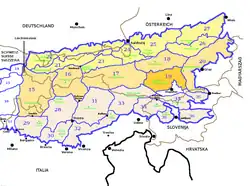 ![]() Alpes orientales según la SOIUSA, con los Alpes de Estiria y Carintia destacados en naranja. | ||