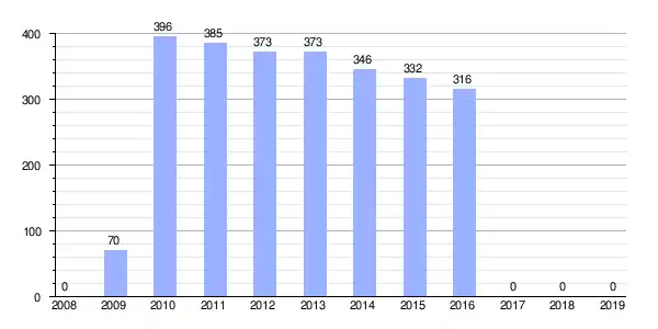 | Gráfica de evolución demográfica de Alpujarra de la Sierra[1] entre 1981 y 2021 |