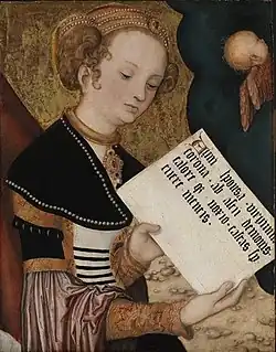 El Retablo de Praga de Lucas Cranach el Viejo fue pintado hacia 1520 por este artista alemán; el retablo que presentaba a la Virgen María junto a varias santas, fue en su época el segundo retablo más importante de la catedral de San Vito. El retablo fue probablemente traído a Praga por encargo del emperador Maximiliano I. La razón podría haber sido el compromiso de su nieta María con Luis II de Hungría, el compromiso de Fernando I y Ana Jagellón (1515) o la coronación de María de Habsburgo como reina de Bohemia (1522). Cien años más tarde, en 1619, el retablo cayó víctima de la furia iconoclasta calvinista. Las figuras de las santas fueron recortadas y su parte central destruida.