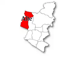 Alte es una freguesia portuguesa del concelho de Loulé, con 94,69 km² de superficie y habitantes (2001). Su densidad de población es de 23,0 hab/km².