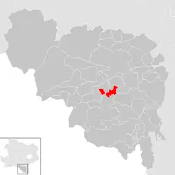 Se encuentra ubicada al sur del estado, al sur de Viena y del río Danubio y a poca distancia al norte de la frontera con el estado de Estiria.[2]