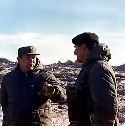 ![]() Gral. Brig. Daher (izq) dando indicaciones al Tte. Cnl. Seineldín en Malvinas. | ||