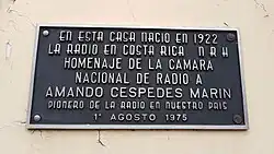 Artículo: Biografía de Amando Céspedes Marín. Disponible en: Soloheredia. Consultado el 23 de noviembre de 2015. Artículo: Benemérito de la Patria. Disponible en: Asamblea. Consultado el 23 de noviembre de 2015. Artículo: El padre de la radio de Costa Rica. Disponible en: EverardoHerrera. Consultado el 23 de noviembre de 2015.