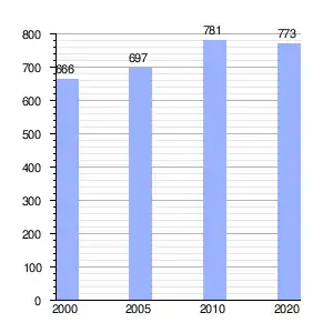 Cuenta con 773 habitantes lo que representa un decrecimiento promedio de -0.11% anual en el período 2010-2020 sobre la base de los 781 habitantes registrados en el censo anterior. Ocupa una superficie de 0.2542 km², lo que determina al año 2020 una densidad de 3041 hab/km².[7]