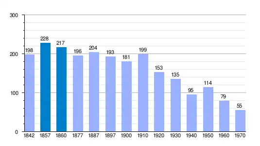 | Gráfica de evolución demográfica de Amayuelas de Abajo[8] entre 1842 y 1970 |