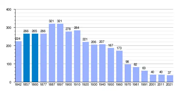| Gráfica de evolución demográfica de Amayuelas de Arriba[3] entre 1842 y 2021 |