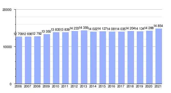 | Gráfica de evolución demográfica de Ambérieu-en-Bugey entre 2006 y 2021 |