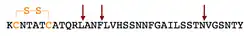 La forma humana de la IAPP tiene la secuencia de aminoácidos KCNTATCATQRLANFLVHSSNNFGAILSSTNVGSNTY, con un puente disulfuro entre los residuos de la cisteína 2 y 7. Ambos el C-terminal y el puente disulfuro son necesarios para la actividad biológica completa de la amilina.[7] La IAPP es capaz de formar fibrillas amiloides in vitro. Dentro de la reacción de fibrilación, las estructuras prefibrilares son extremadamente tóxicas para los cultivos de células beta e insulinomas.[7] Las estructuras amiloides fibrilares también parecen tener un efecto citotóxico en cultivos celulares. Estudios han demostrado que las fibrillas son el producto final y no son necesariamente la forma más tóxica de amiloide proteico/peptídico en general. Un péptido que no forma fibrillas (1-19 residuos de una amilina humana) es tan tóxico como el péptido de longitud completa pero el segmento respectivo de una amilina de rata no lo es.[8][9][10] También fue demostrado por espectroscopia de resonancia magnética nuclear que los fragmentos 20-29 de la amilina humana fragmentan membranas.[11] Las ratas y ratones tienen seis sustituciones (tres que son sustituciones prolinas en las posiciones 25, 28, y 29) que se cree que previenen la formación de fibrillas amiloides. La IAPP de ratas no es tóxica para las células beta, incluso sobreexpresadas.