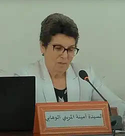 - ↑ «Mrs Amina Lemrini El Ouahabi». Kingdom of Morocco. National Human Rights Council (en inglés). Archivado desde el original el 10 de noviembre de 2017. Consultado el 2 de abril de 2020.