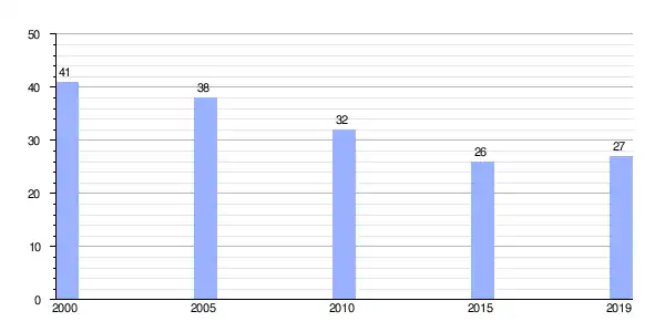 | Gráfica de evolución demográfica de Amoexa (aldea) entre 2000 y 2019 |