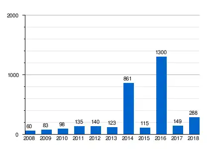 - ↑ NASA (28 de julio de 2015). «Detections per year» (en inglés). Consultado el 2 de agosto de 2015.