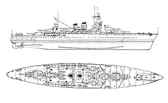![]() Diagrama del acorazado Andrea Doria en 1940 | ||