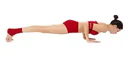 | Chaturanga Dandasana[43] | चतुरङ्गदण्डासन | Bastón de cuatro extremidades Plancha baja |