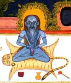 | Kurmasana[81] | कूर्मासन | Tortuga | Sentado | Flexión hacia adelante | Siglo XV HYP 1.27[82] Siglo XVII GhS 2.26[83] |