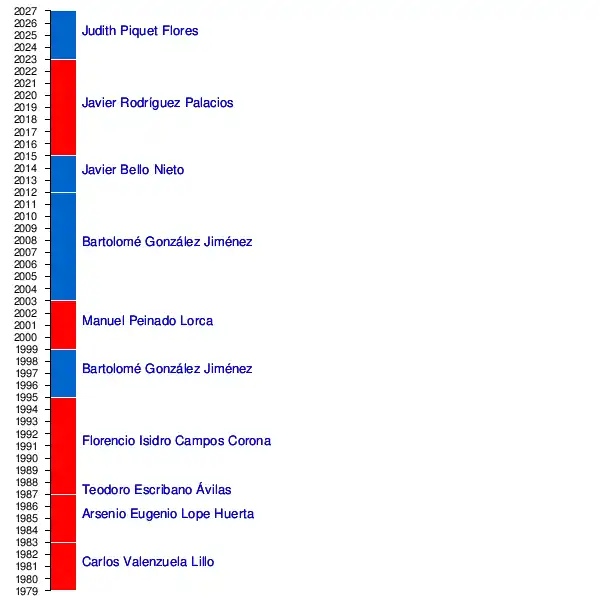 | 12/07/2012-13/06/2015 | Francisco Javier Bello Nieto | PP Sustituyó a Bartolomé González Jiménez |
