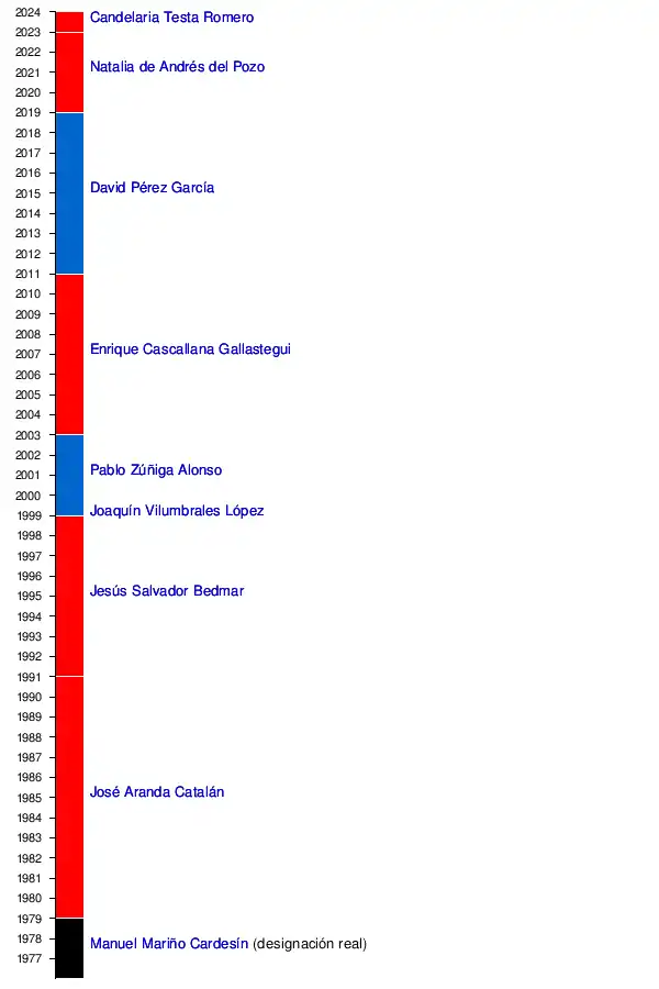| Joaquín Vilumbrales López (hasta Sep 1999) y Pablo Zúñiga Alonso | 1999 | 2003 | PP | |