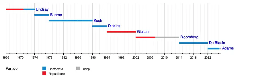 | 108 | John V. Lindsay | 1 de enero de 1966-31 de diciembre de 1973 | Republicano (1966-1971) Demócrata (1971-1973)[1] |