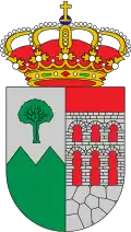Partido. Primero de plata, un álamo de su color sobre ondas de azur y plata. Segundo, de gules, un acueducto de plata sobre peñascos de lo mismo. Al timbre la Corona Real Española.[3] |