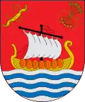 En campo de oro, tres rocas de su color, sumadas, cada una de ellas de tres matas de ortigas de sinople, y colocadas sobre ondas de plata y azur. Timbrado de corona Real, cerrada.[14]