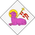 «De oro, cuatro palos de gules, brochante sobre el todo, una flor de lis de azur.»[5] |