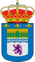 Escudo partido. 1º de azur, una concha de plata surmontada de un bezante del mismo metal. 2º de plata, un león de gules. Al timbre corona real cerrada.[27] |