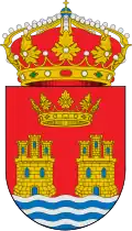 Escudo: De gules con dos castillos de oro puestos en faja sobre el jefe, y dos lises de plata colocadas en la punta, también en faja. Bordura de azur con un castillo de oro en la punta. Timbrado de la Corona Real Española.[6] |