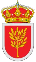 Escudo cuadrilongo con base circular. En campo de gules (rojo), con una planta de espliego florida, de oro y en los cantones del jefe, sendos escudetes de oro con cuatro palos de gules. Al timbre, Corona Real Abierta.[40] |