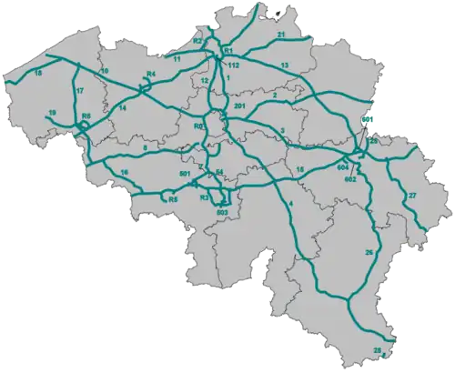 Lista de autopistas y carreteras de circunvalación de Bélgica.
