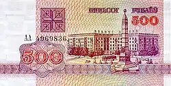 | 500 Rublos | Plaza de la Victoria en Minsk | Violeta |