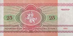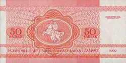| 500 Rublos | Biblioteca Nacional de la República de Bielorrusia, Minsk | Rosa/Azul | 72 x 159 mm |